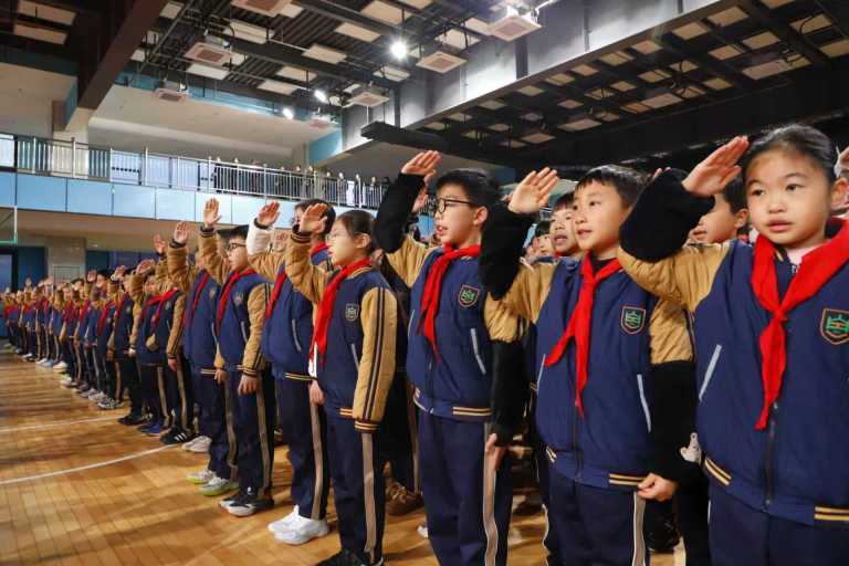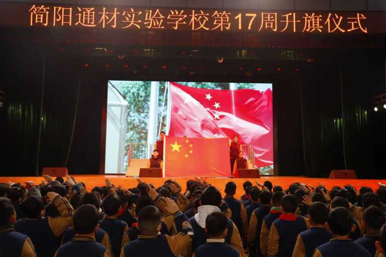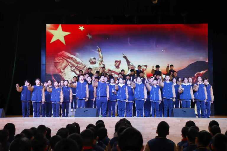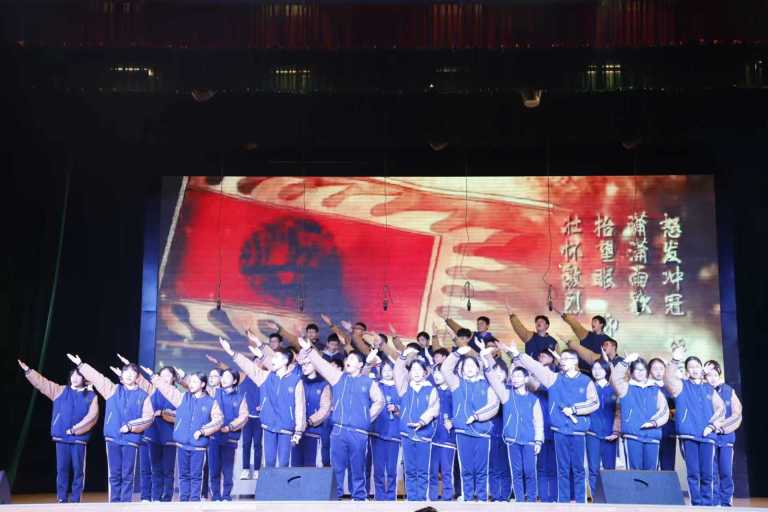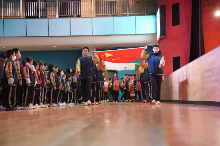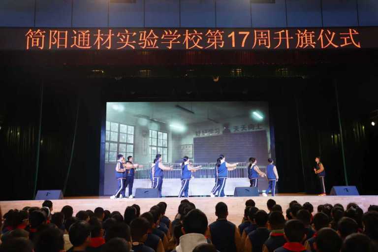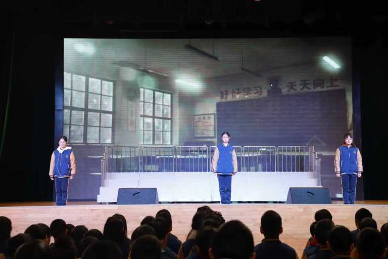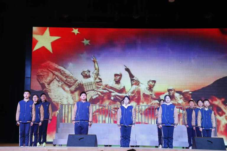 仪式在庄严肃穆的升国旗、奏唱国歌环节中拉开帷幕。全体师生肃立行注目礼,少先队员敬队礼,嘹亮的国歌声中,爱国情怀在校园的每一个角落升腾。随后,全校师生齐唱校歌《寻梦》,悠扬的旋律婉转回荡,展现出学子们对梦想的执着追求与昂扬向上的精神风貌。。