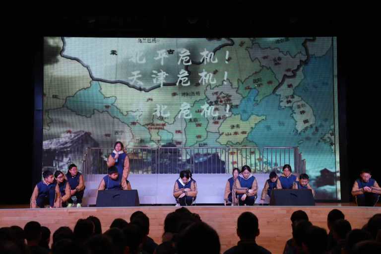 班级风采展示环节成为本次升旗仪式的一大亮点。同学们以情景剧为创新载体,生动回溯了岳将军“怒发冲冠”的赤诚忠心与“还我河山”的壮志豪情,带领在场师生重温那段家国同构的壮阔史诗。随后,一首铿锵有力的《满江红》唱响校园,唱尽英雄泪、抒尽家国情,让师生们沉浸式触摸历史脉搏,真切感受英雄精神跨越时空的永恒力量。表演落幕时,现场掌声雷动,这掌声既是对同学们倾情演绎的肯定,更是对守护山河的民族英魂、身边默默奉献的平凡英雄的深切致敬。