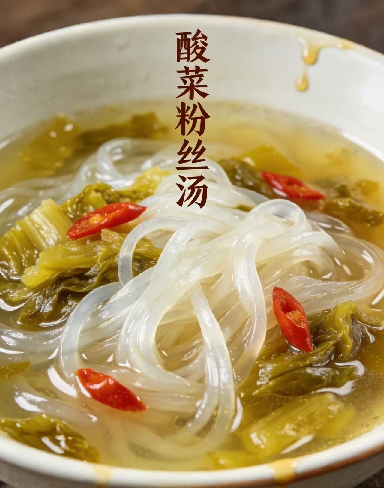 • 营养成分:粉丝含碳水供能,酸菜含膳食纤维,搭配配菜补少量维生素与矿物质,水分足