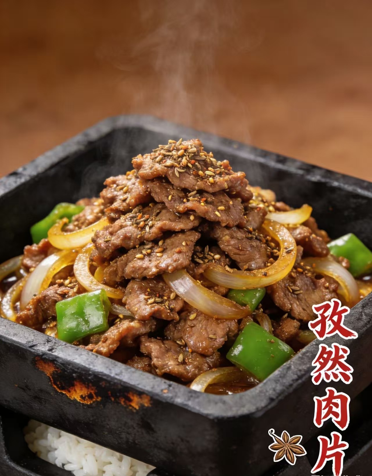 • 营养成分:含优质蛋白质、铁、锌、钾,孜然含挥发油,搭配蔬菜补少量膳食纤维