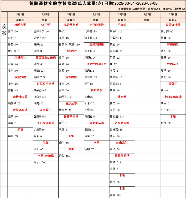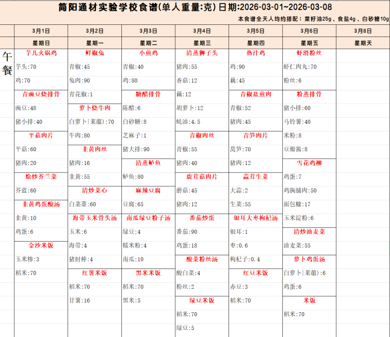 我们一起来看看本周食谱吧