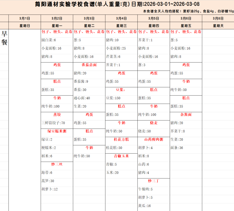 本周食谱