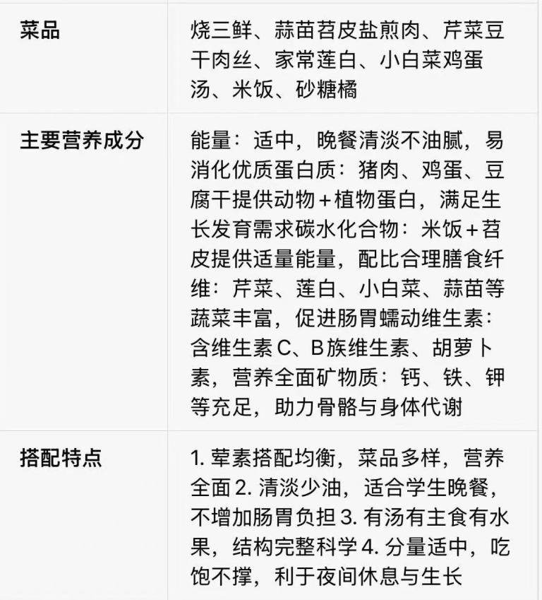 晚餐营养分析
