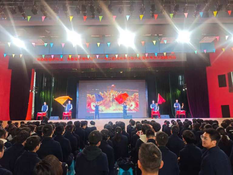 活动在激昂嘹亮的校歌声中正式拉开帷幕。优秀学生代表李睿盈率先发言,她结合自身学习经历分享心得感悟,言辞真挚、斗志昂扬,向全体同学传递了脚踏实地、奋勇争先的奋进力量。