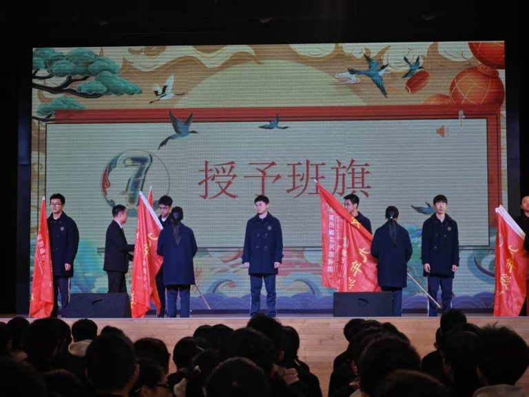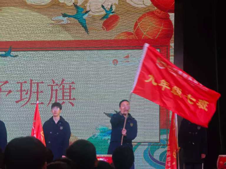 在 “展未来、踏征程” 主题篇章,晋校长深情寄语初三学子,勉励大家珍惜百日时光,以坚定的信念、饱满的热情、务实的行动全力冲刺中考,不负青春、不负韶华、不负师长期待。初三全体教师团队庄严宣誓,承诺将恪尽职守、倾心陪伴、全力护航,做同学们最坚实的后盾。学生代表康钰涵带领全体同学郑重宣誓,誓言铿锵有力、掷地有声,彰显出通材学子决胜中考的坚定信念与磅礴气势。随后,晋校长为各班授战旗,各班口号震天、士气高涨,将整场活动推向高潮。