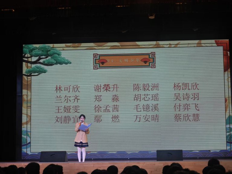 表彰环节中,进步之星、德馨之星、优秀学生干部、三好学生、博学之星等十大类奖项依次揭晓。受表彰同学依次登台接受荣誉,台下掌声雷动、经久不息,热烈的氛围充盈着整个会场。这既是对过往努力的肯定,更是对未来前行的激励。