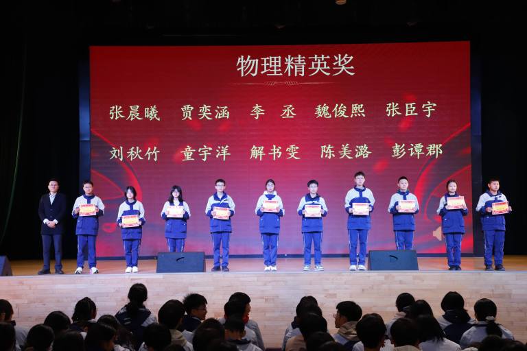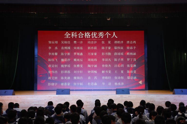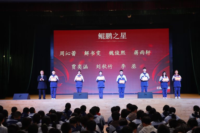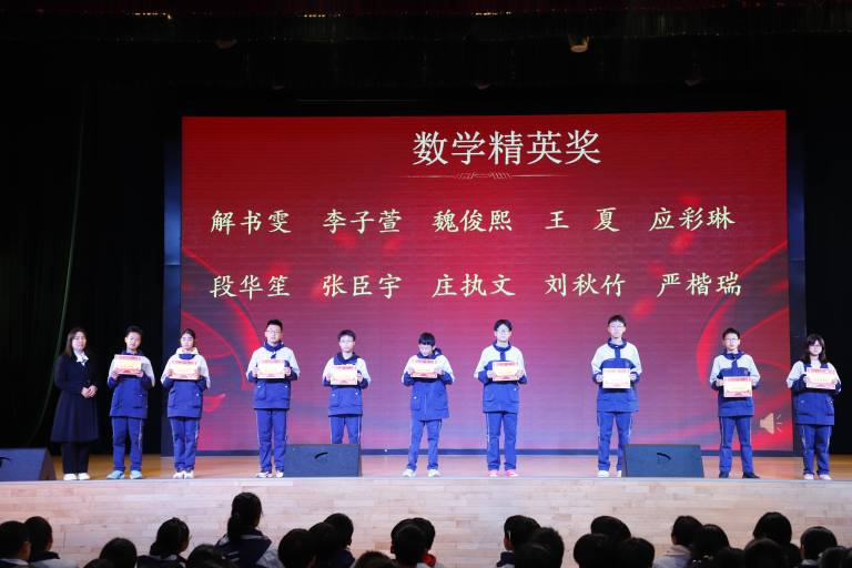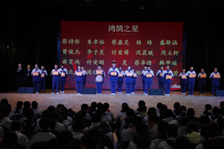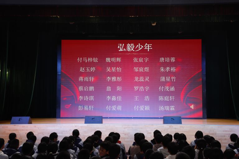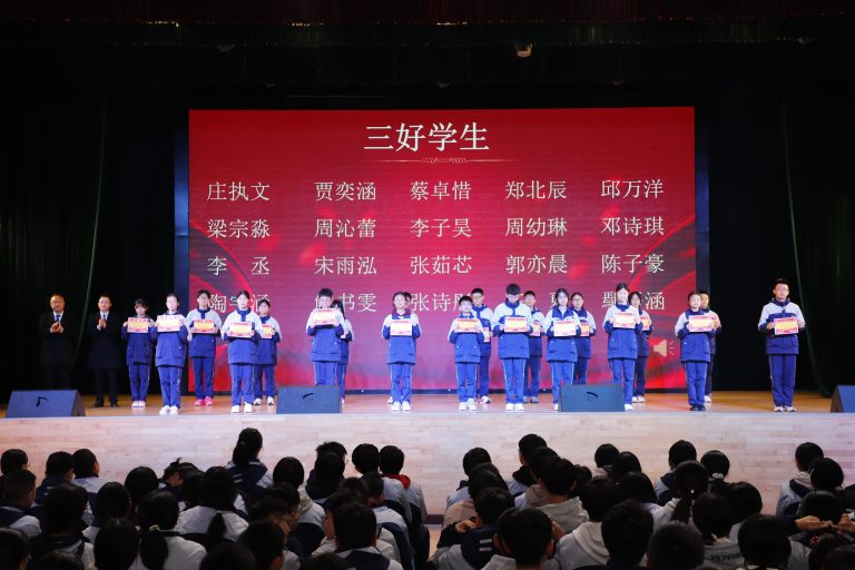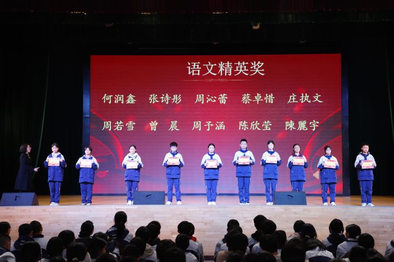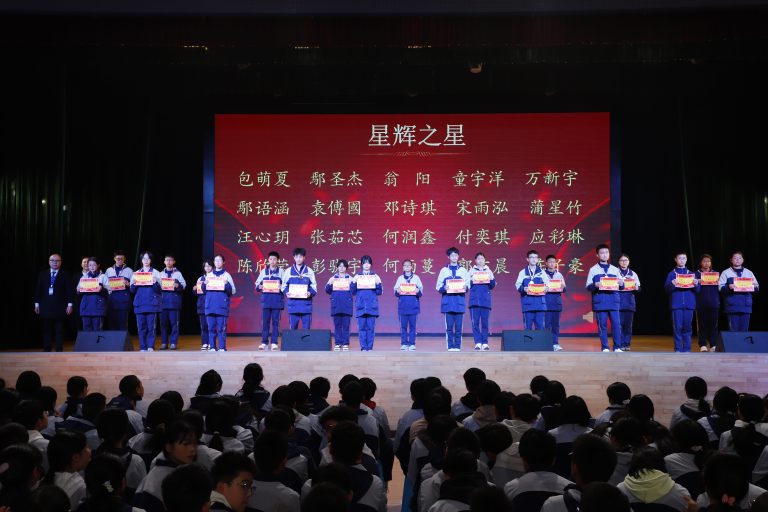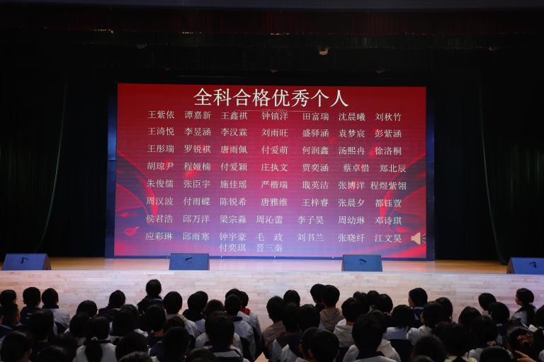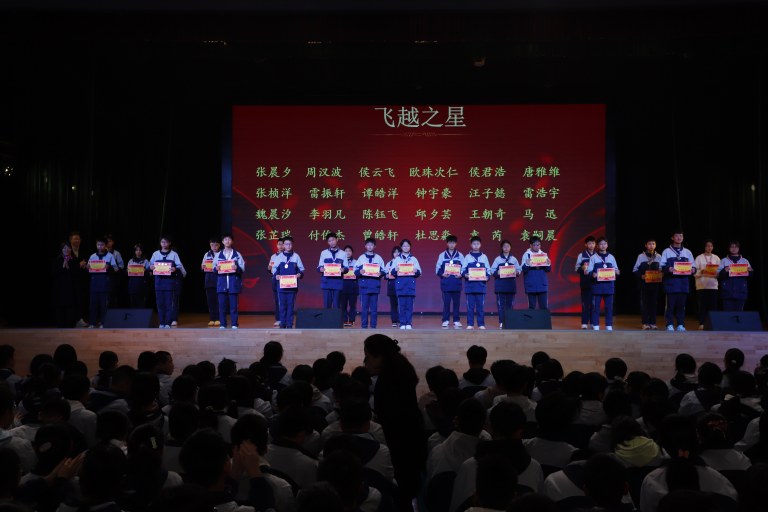 表彰环节庄重而热烈。大会依次宣读校级与年级表彰决定,对三好学生、优秀学生干部、文明少年、劳动标兵、优秀组长、馨和雅室、弘毅少年、全科合格优秀个人、学科精英、飞越之星、星辉之星、鸿鹄之星、鲲鹏之星、凌云之星等获奖个人与集体进行表彰。颁奖嘉宾为获奖学子逐一颁奖,现场掌声阵阵,致敬每一份拼搏与坚守。