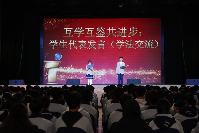 大会在悠扬的校歌《寻梦》中正式拉开帷幕。学法交流环节,优秀学生代表依次登台,结合自身学习实践,分别围绕全科统筹、语文、数学、英语、物理及政史地生等学科,分享实用高效的学习方法。从课堂专注、错题整理、时间管理到习惯养成,同学们倾囊相授,为大家送上干货满满的“学习秘籍”,让全体同学学有方向、赶有目标。