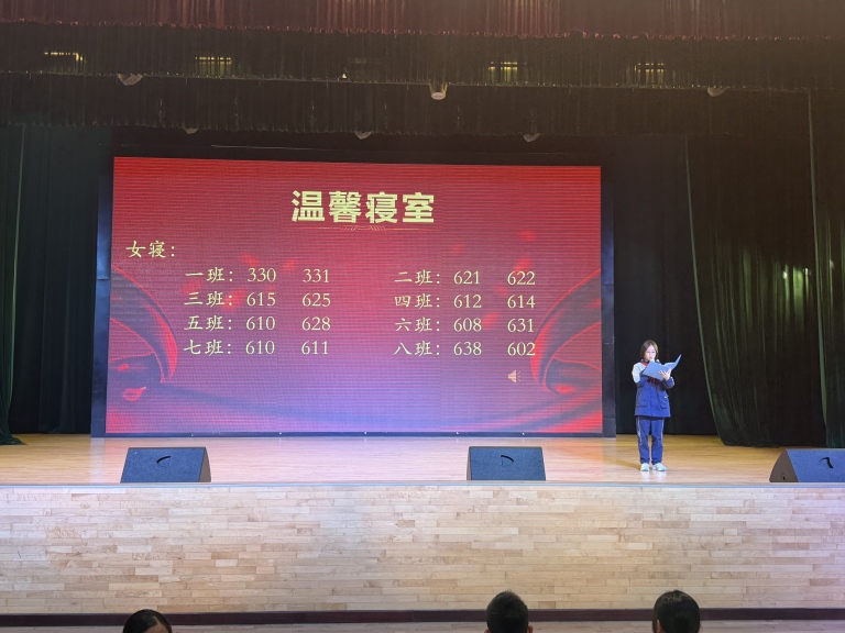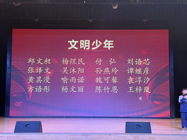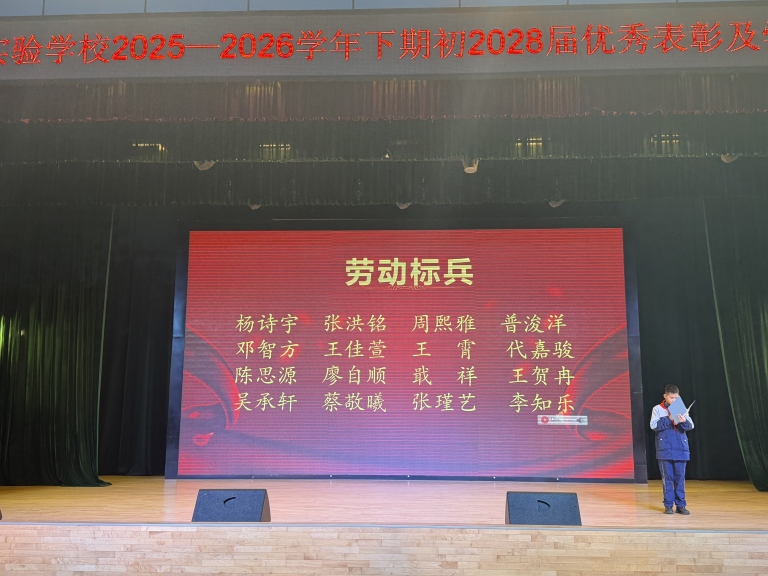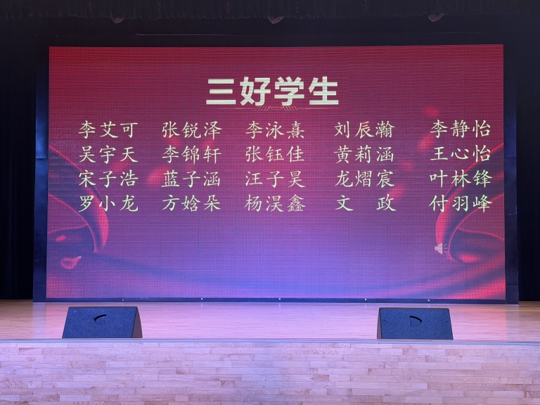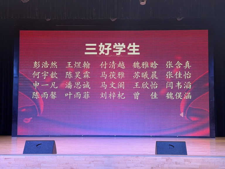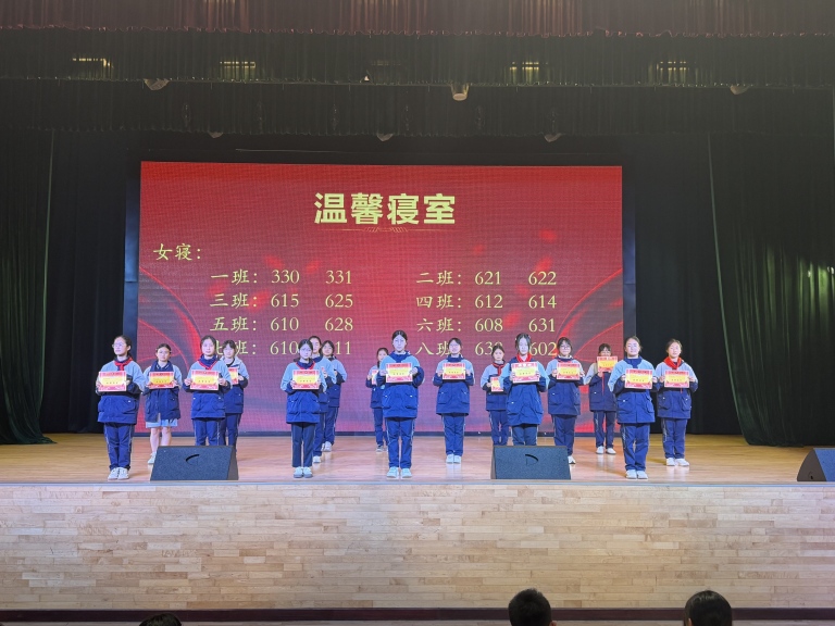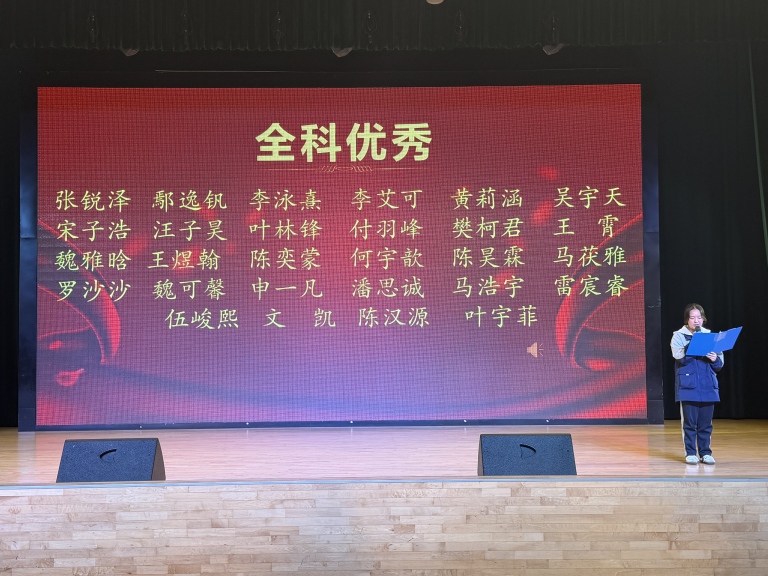 “三好学生”德为根、智为干、体为叶,在春风里站成一道向上的风景;“优秀学生干部”以责任与担当,守护集体的秩序与温度;“文明少年”言行得体、谦逊有礼,用微笑传递温暖,用礼貌彰显素养;“劳动标兵”用最朴素的方式诠释“劳动最光荣,奋斗最幸福”的真谛;“优秀组长”带领组员共同进步,印证了“独行快,众行远”的哲理。尤为引人注目的是“全科优秀”奖的颁发。这群“六边形战士”以全优之姿行至山巅,用自律书写凯歌,他们以实力证明:卓越,从来不是天赋的馈赠,而是方法与汗水的结晶。此外,“温馨寝室”的表彰也让典礼增添了几分温情。窗明几净的寝室,不仅是校园里的温暖小家,更是同窗情谊的最好注脚。文明班集体的颁发将整个颁奖活动的氛围推向了高潮。