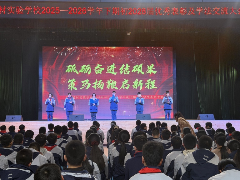 春回大地,万象更新。3月11日晚七时许,我校初一年级全体师生齐聚艺体馆三楼,隆重举行以“砥砺奋进结硕果,策马扬鞭启新程”为主题的颁奖典礼暨学法交流活动,共同见证奋斗者的荣光,奏响新征程的号角。