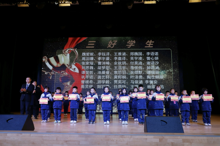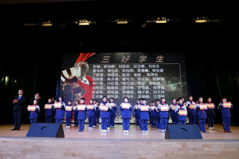 1-2年级、3-4年级、5-6年级三好学生依次接受表彰,他们是学业优异、全面发展的典范,用不懈努力收获了属于自己的硕果。付旭、晋凤娟、游丽英等老师宣读获奖名单,颁奖嘉宾为孩子们颁发奖状,见证他们的成长与蜕变。