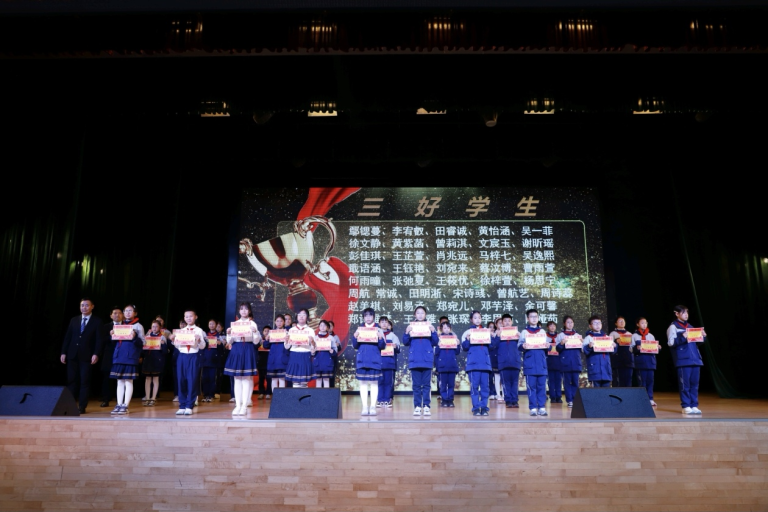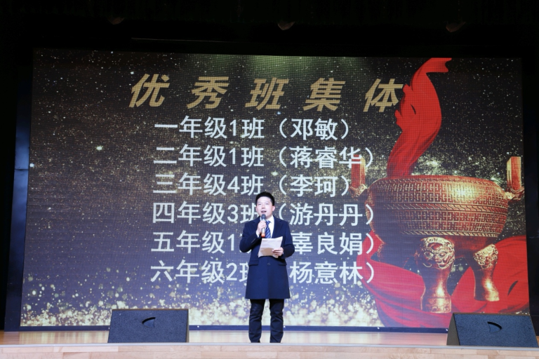 学校领导胡庆首先宣布上期优秀班集体,他们学风浓厚、纪律严明,互帮互助、共同进步,用拼搏书写成绩,用友爱温暖彼此,是充满活力与担当的模范集体。