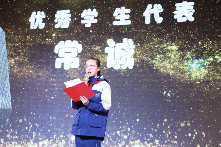 表彰结束后,优秀学生代表常诚上台发言,分享了自己的学习心得与成长感悟,表达了对学校、老师和家长的感恩之情。