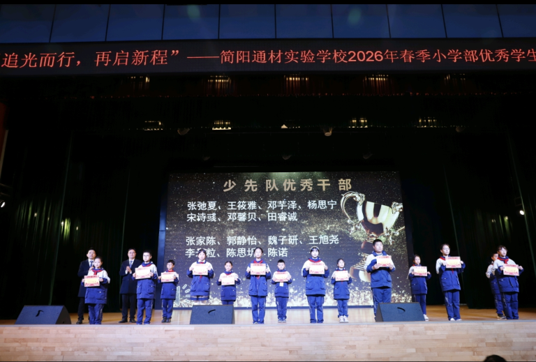 春风送暖,万物生长。为表彰先进、树立榜样,激励全体师生砥砺奋进,3月12日晚,简阳通材实验学校小学部“追光而行,再启新程”2026年春季优秀学生表扬活动在学校艺体馆三楼隆重举行。全体小学师生齐聚一堂,共同见证这份荣耀与成长。