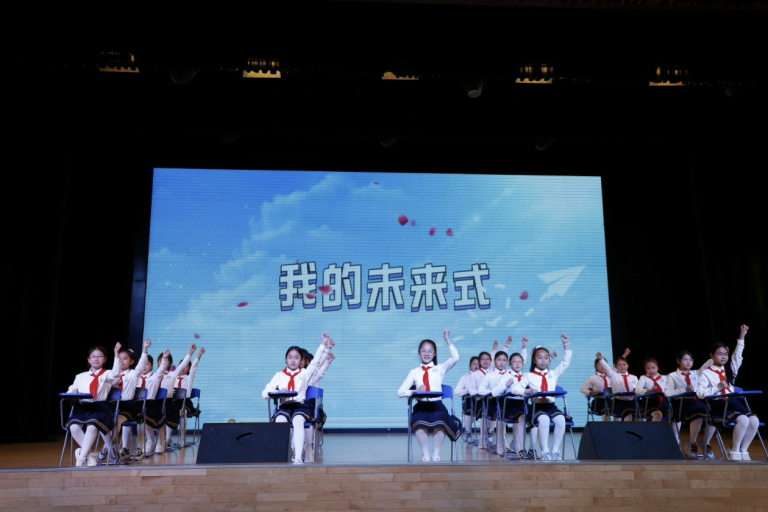 表彰间隙,5.4班带来课桌舞《未来式》,明快的节奏、整齐的动作,展现了少年们的活力与朝气。